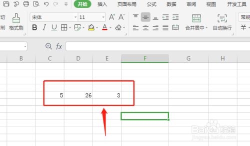在电脑中打开【EXCEL】软件,在单位格平分别输入数值【5】、【26】和【3】。
