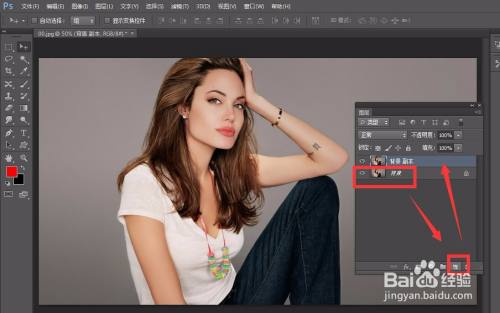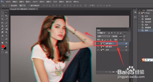 我们依次选中两个复制图层,按delete键删除复制图层的面部区域,使得人像的面部变得清楚。