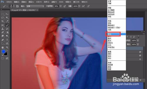 最后,我们设置图层夹杂模式为【叠加】,如下图所示,故障风人像结果就完当作了。