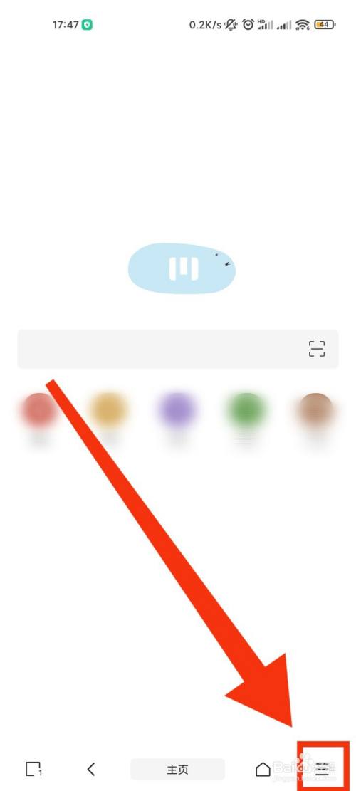 进入M浏览器界面后,点击右下角“三杠”图标,进入菜单。