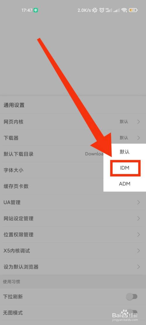 点击下载器后,点击“IDM”,就可以将M浏览器的下载器改当作IDM了。