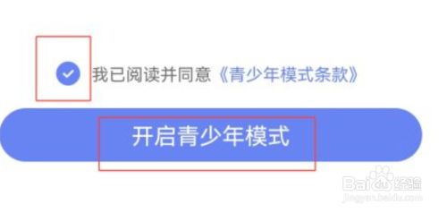 勾选我已阅读并赞成和谈,然后点击开启青少年模式