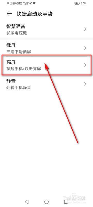 工具/原料荣耀畅玩20Magic UI4.0方式/步骤1点击打开“设置”面板。2点击“辅助功能”。3点击“快捷启动及手势”。4点击“亮屏”。5将“拿起手机亮屏”旁的小滑块点亮即可开启。6将“拿起手机亮屏”旁的小滑块点暗即可封闭。END