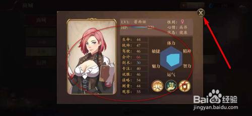 可查看到蕾西娅的属性及技术详情,点击“×”返回。