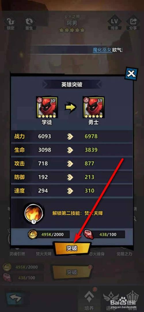 工具/原料荣耀9xEMUI10.1.0.133火柴人醒觉1.2方式/步骤1在火柴人醒觉手游点击“英雄”。2点击需要解锁技术的英雄卡片。3晋升英雄品级,点击“冲破”。4点击“冲破”。5冲破当作功,点击空白处封闭。6即可解锁获得新技术。END
