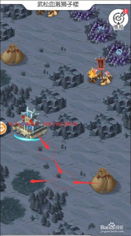 右下郓哥证词,首先推沙袋到右下,然后推沙袋到右,清完怪,此时有两个沙袋记为A和B,推一个出去左边树环抱一圈的中心,然后推另一个到右边泥潭清完怪,拿到证词