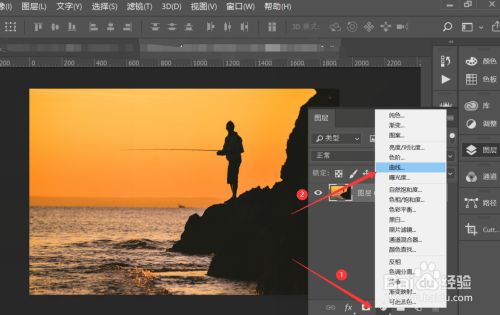 点击本家儿界面右侧的图层选项—>在弹出的文本框中点击下方的建立新的填充或调整图层选项