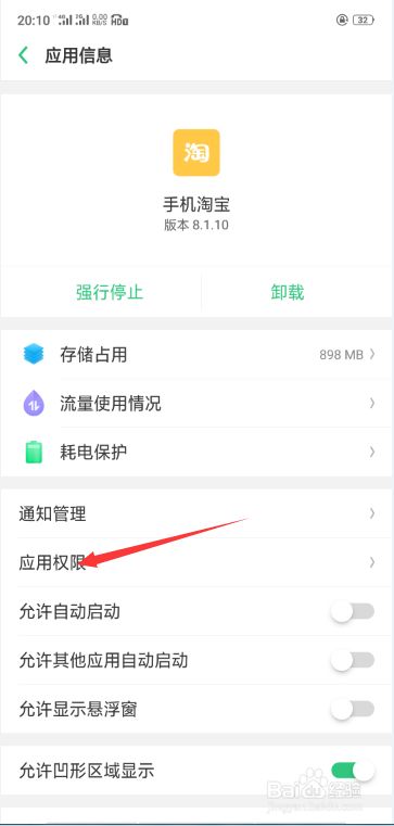 在应用办理本家儿界面,找到您需要设置权限的应用,例如手机淘宝,如下图,并点击,进入应用信息本家儿界面,如下图