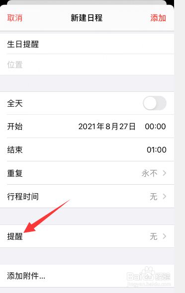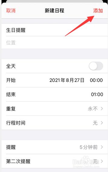 苹果手机中打开日历后,点击要设置生日提醒的日期