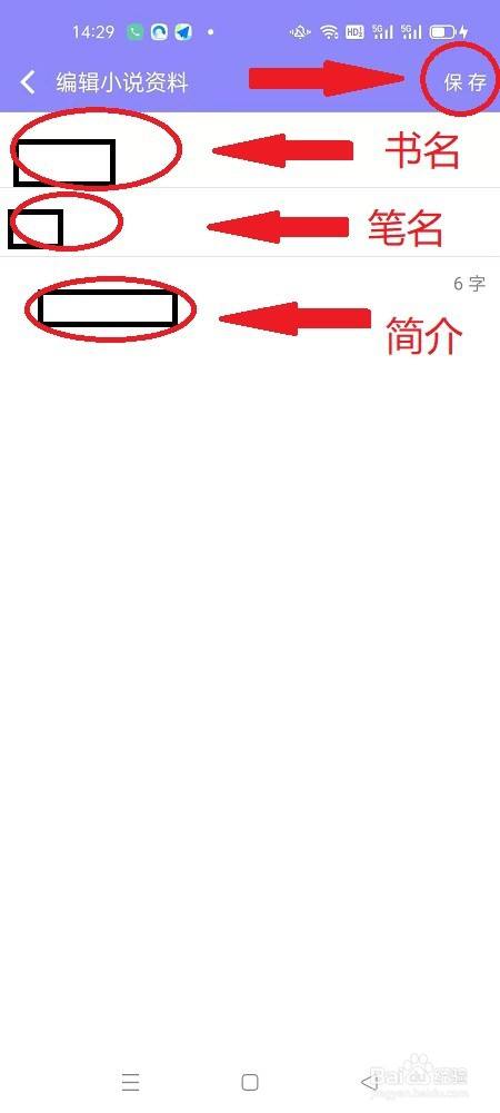 4、进入编纂小说资料页面填写书名和笔名后,点击“保留”,如图