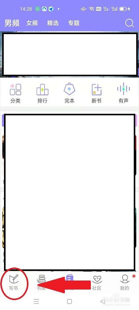 2、进入首页点击“写书”,如图