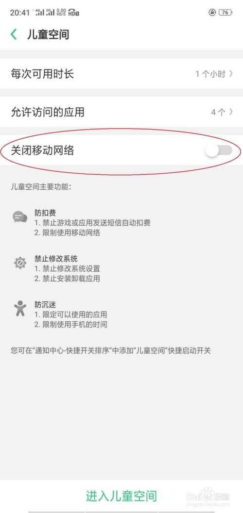 最后,对移动收集进行设置,即您是许可利用移动收集仍是不许可利用移动收集,例如将移动收集打开,如下图,最后点击进入儿童空间,如下图,