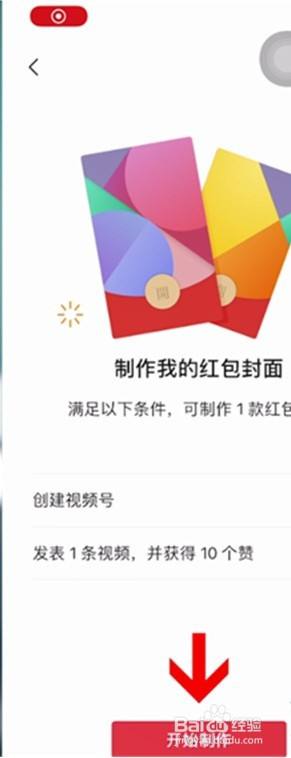 3、这时页面会提醒建立视频号,再颁发一条视频并获得十个赞即可建造一条目红包封面,完当作后从头打开页面然后点击起头建造。