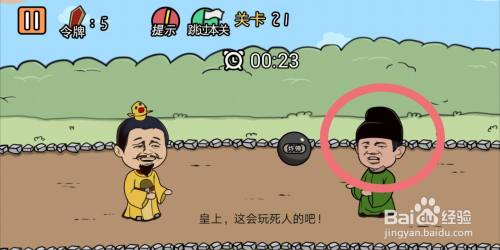 在本关游戏中,可以看到皇上和侍卫在玩【抛掷弹】的游戏。