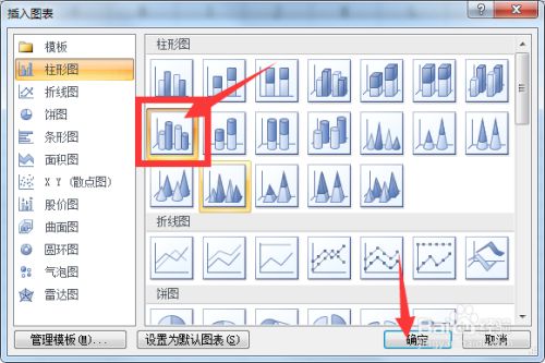 在进入插入图表本家儿界面后,选择【柱形图】,然后选择您所要利用的柱形图的类型,并点击右下角简直定按钮