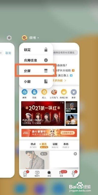 5、您也可以从手机底部上滑并搁浅呼出后台应用程序,长按想要分屏的应用,点击分屏即可。