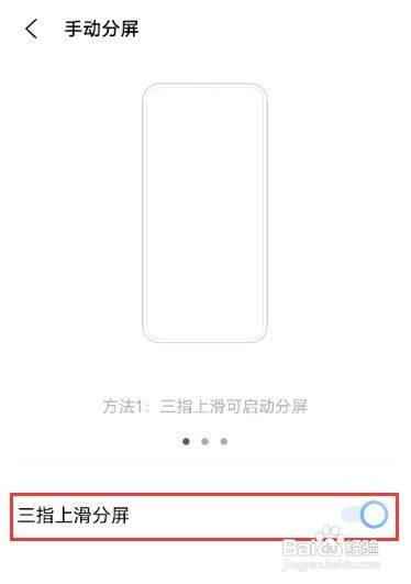 4、打开【三指上滑分屏】右侧的开关。