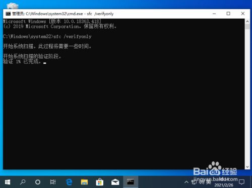 在 CMD 号令提醒符中输入 sfc /verifyonly 可以查抄修复系统。