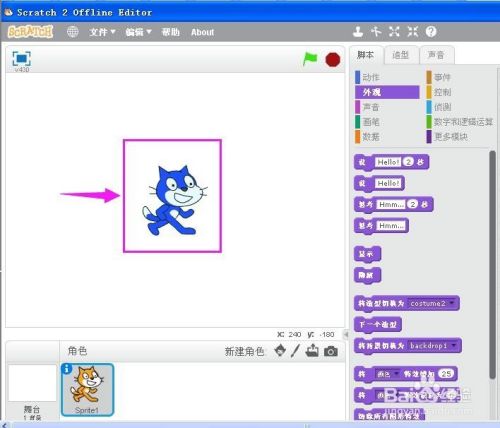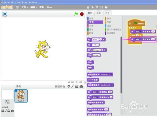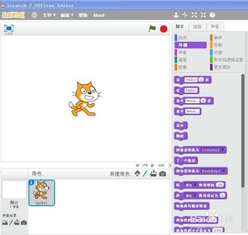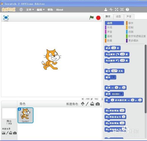 打开scratch程序,进入它的工作界面;