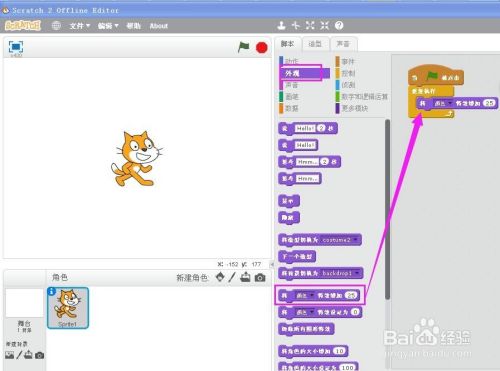 点绿旗运行程序,小猫的颜色就起头发生转变。