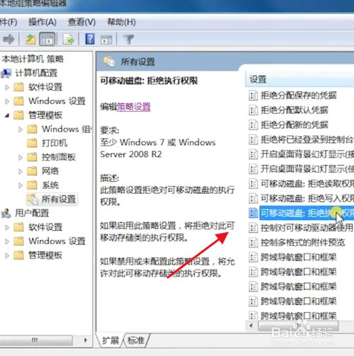 打开右边框框里的可移动磁盘拒绝执行权限。