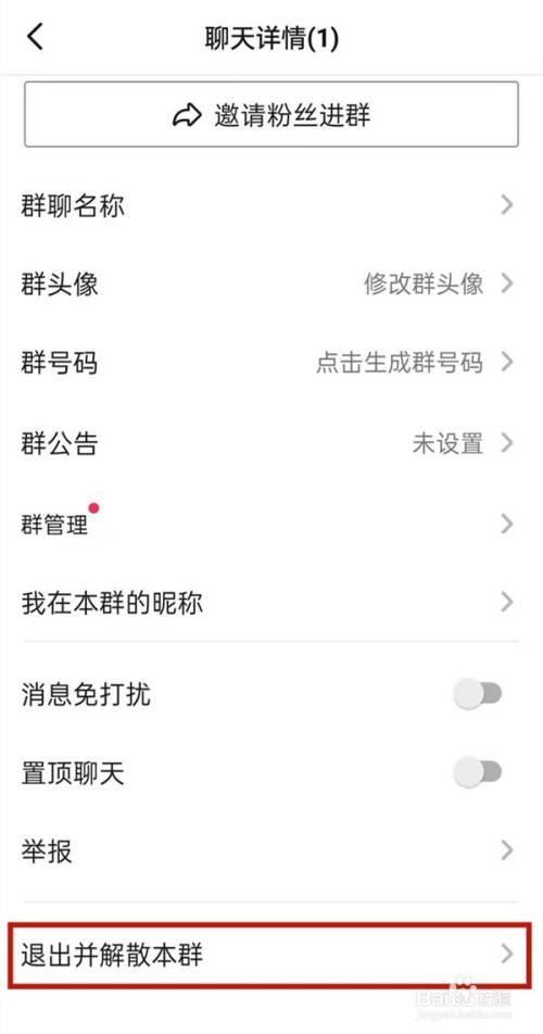 5、点击粉丝群右上角三个点图标后,点击退出并闭幕本群即可。