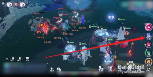 如图所示匹配队友进入战斗(保举长生门与合欢派以及青云门进行组队),点击右侧【技术】击杀怪物。