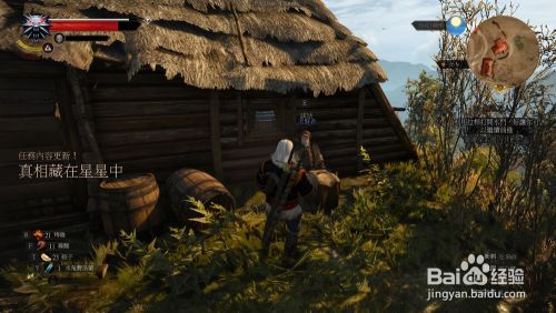 到处所 和门前坐着的的老夫对话 他会告诉杰洛特的过往 但要知道将来就需要找到特别的草药