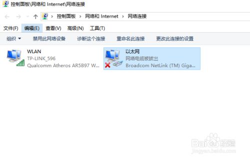 取而代之的定名是“以太网”,我们可以右击该图标,进入设置列表,在这里可以点击“禁用”或“启用”收集,查看“收集属性”等。