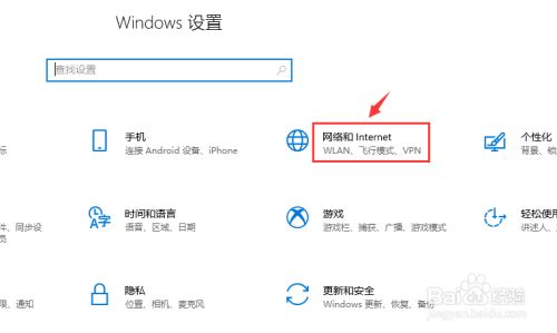 然后在诸多设置选项中找到并点击“收集和internet”菜单,如图所示。