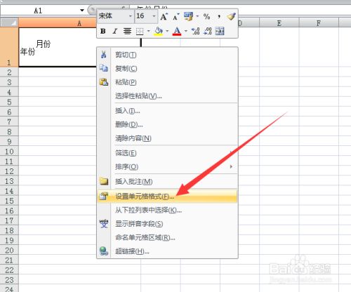 然后,选中您要输入在单位格上方的汉字(例如月份),然后右击该文字,鄙人拉菜单中选择【设置单位格格局】,进入设置单位格格局本家儿界面