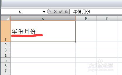 在任一单位格中输入肆意汉字(例如,年份和月份),此时,我们会发现输入的汉字在一条直线上,没有分当作上下两部门