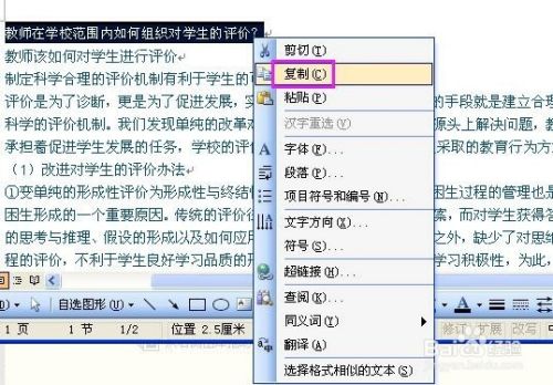 在网上找到需要的相关文字,复制后粘贴到空白文档中,呈现如图所示的文字,有黄色的布景底色;