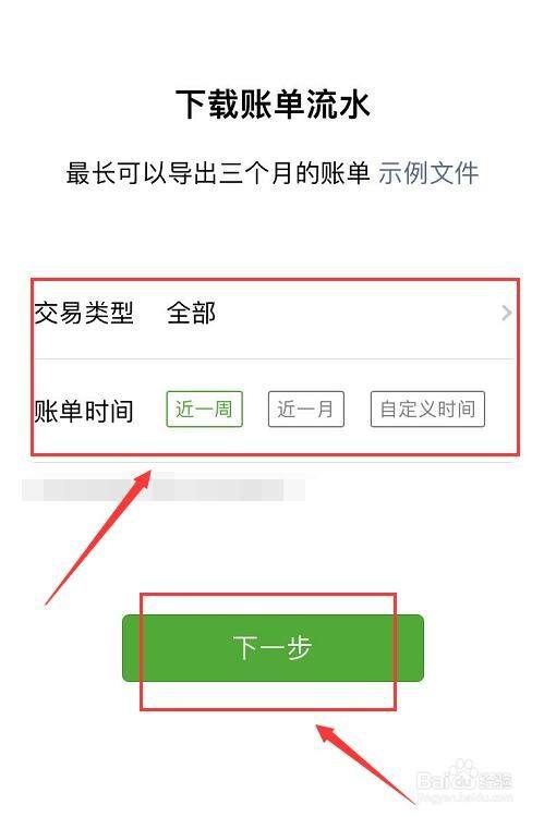 鄙人载账单流水界面,选择买卖类型和账单时候,然后点击【下一步】。