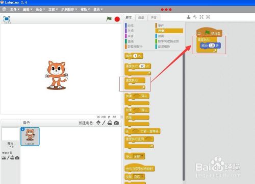 将反复执行号令拉到右边剧本编纂区,如下图所示;