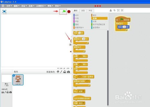 将移动10步拉到“当绿旗被点击时”的下面,并将它们拼接在一路;