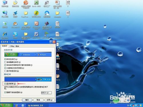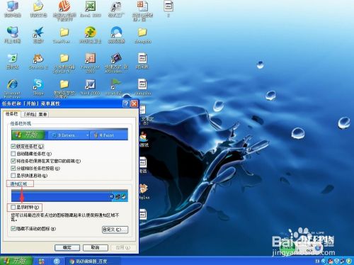 可以看到通知区域的显示时钟没有被选中;