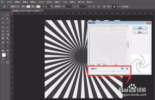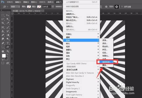 下面,我们点击菜单栏的【滤镜】——【扭曲】——【扭转扭曲】,将靶形设置必然的扭转扭曲。