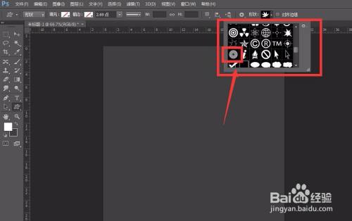 我们点击左侧东西栏的外形东西,选择【自界说外形】,并找到下图框选所示的靶形外形。