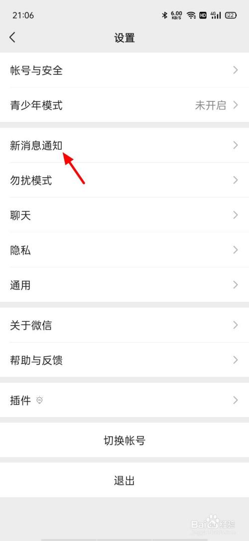 在设置界面,单击新动静通知。