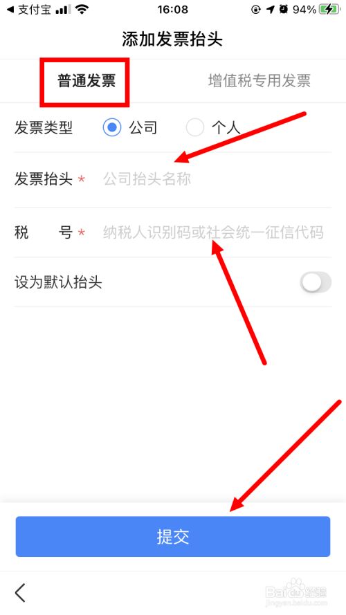 若是是以公司名称为昂首的通俗发票需填写【公司昂首名称】和【税号】,点击【提交】即可。