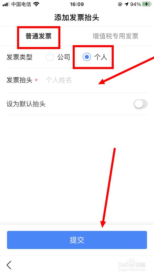 若是是以小我为昂首的通俗发票只需要填写【小我姓名】,点击【提交】即可。