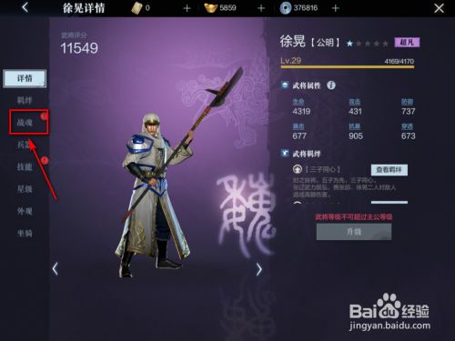 进入武将详情页面后点击页面左侧的【战魂】功能。