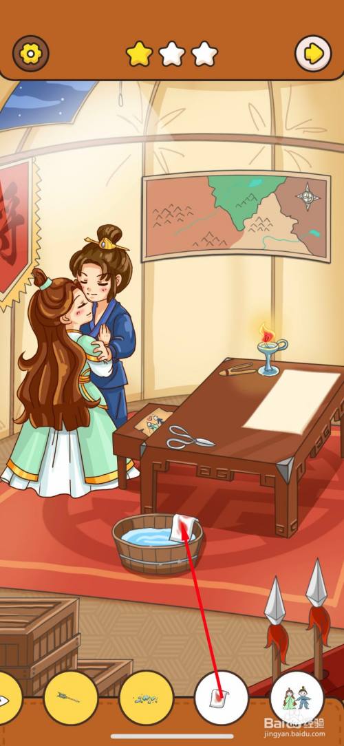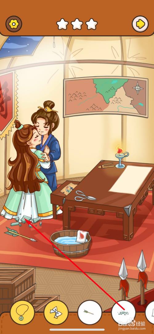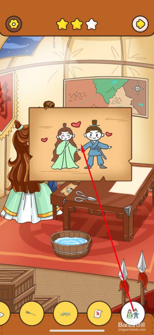 适才男人坐着的椅子上会看到一张手工画,点击放大就是我们要找的第六件物品。