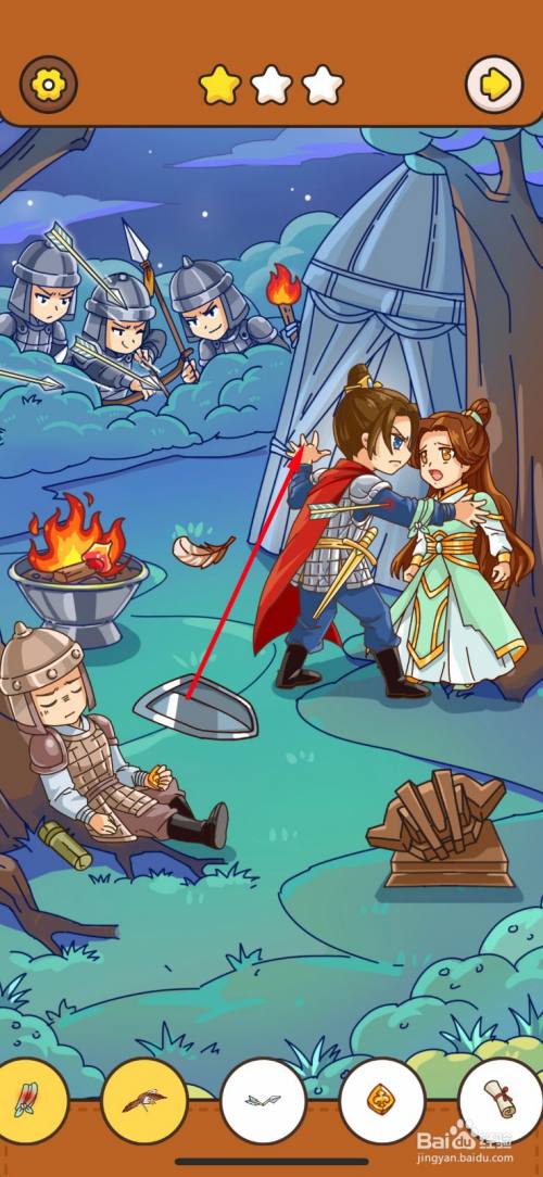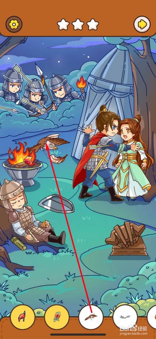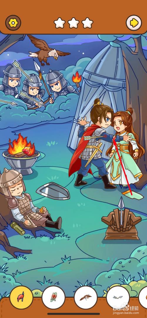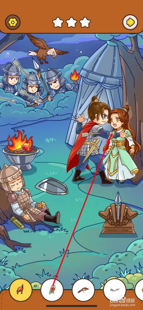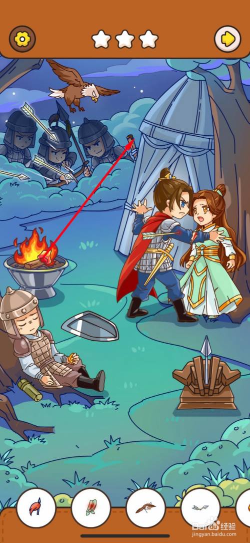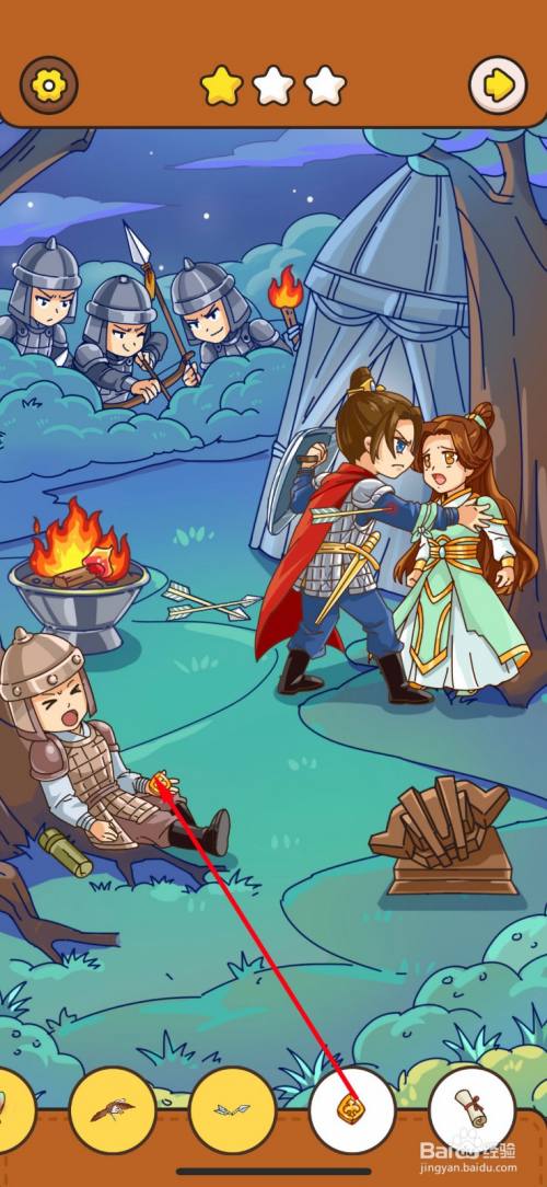 火炬点亮后,就能看清士兵,士兵头顶的就是要找的第一件物品。
