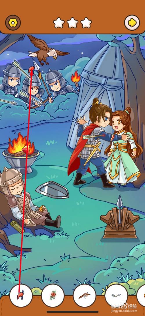 拖动鹰身上失落落的羽毛到装死的士兵脸上。