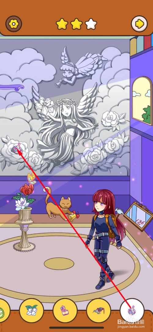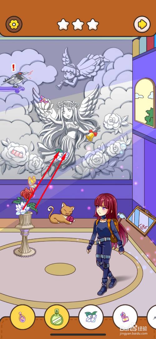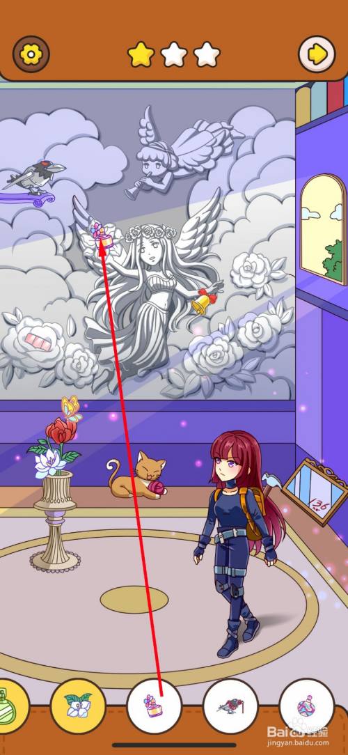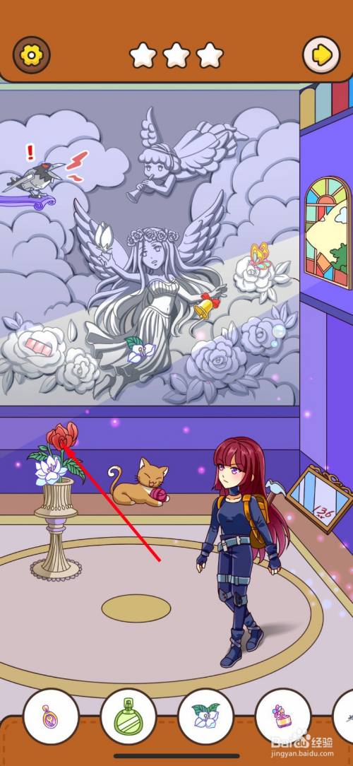 首先点击花盆中的花朵,花朵会把蝴蝶吸引曩昔。
