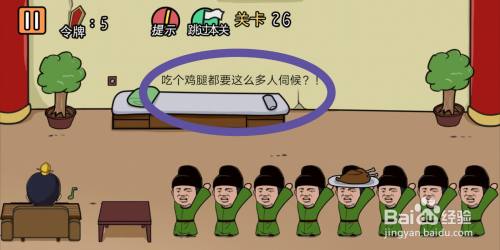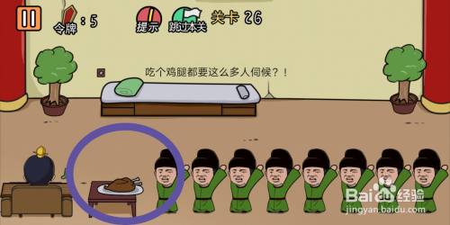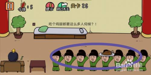 游戏第26关,按照提醒可知,皇上筹算【吃鸡腿】。