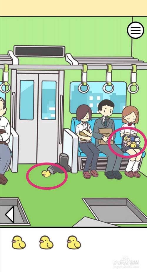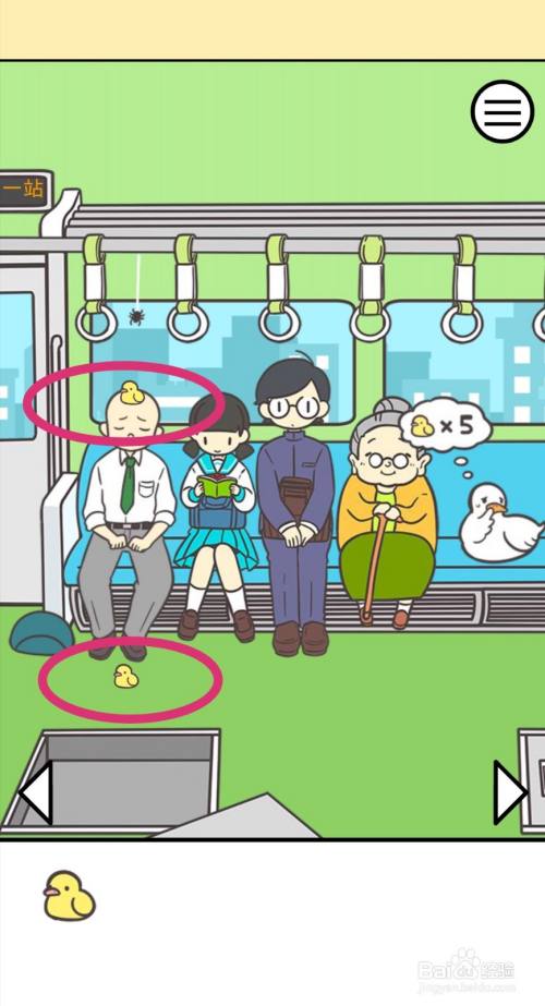 点击捡起地上的【小鸭子】,再拿走男士的帽子,获得第三只小鸭子。
