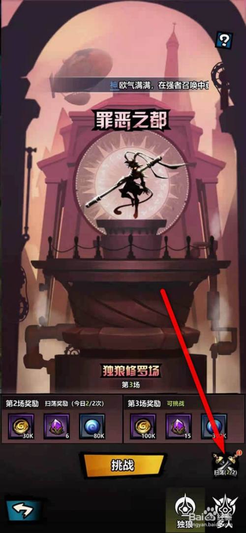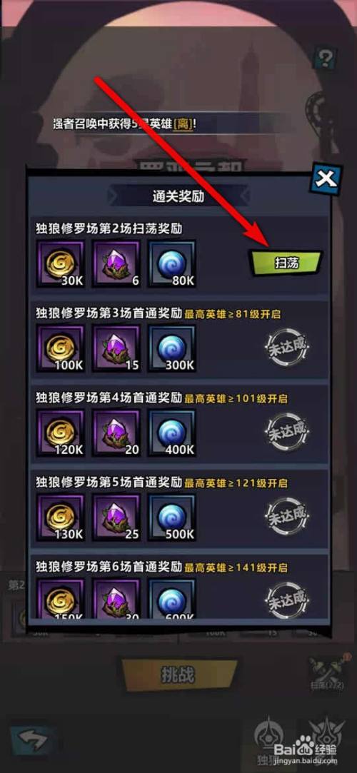 - 初次通关后的关卡方可扫荡,每日限2次。
